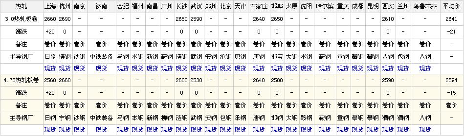 3.0熱軋板卷 | 2660 | 2690 | - | - | - | - | - | - | 2650 | 2590 | - | - | - | 2640 | 2650 | - | - | - | - | - | - | 2610 | - | - | 2641 |