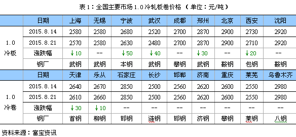 本周冷軋市場穩中有弱。具體來看,華東市場大體持穩,商家根據自身庫存適度調整,1.0mm資源卷板在2550-2600元左右,另外一些新貨也陸續到達,但出貨較前期回落,后市信心顯不足;華中武鋼市場受日照低位資源影響,武鋼報盤回落在2480元,日照在2350-2400元,;長沙較為平穩,雖漣鋼下旬政策跌70元,但商家仍以觀望為主;華北天津市場穩中趨弱,主要最近唐鋼、首鋼到貨增多,前期規格短缺的支撐力度轉弱,加之下游需求萎靡且觀望采購,商戶日成交量多在兩百噸,個別甚至創最低日成交量,致使心態偏空,更加傾向套現;華南市場盤穩運行,成交偏弱,目前柳鋼價格2650-2670元/噸左右的水平,另外武鋼近期將加大投放量,后市不利因素漸增。